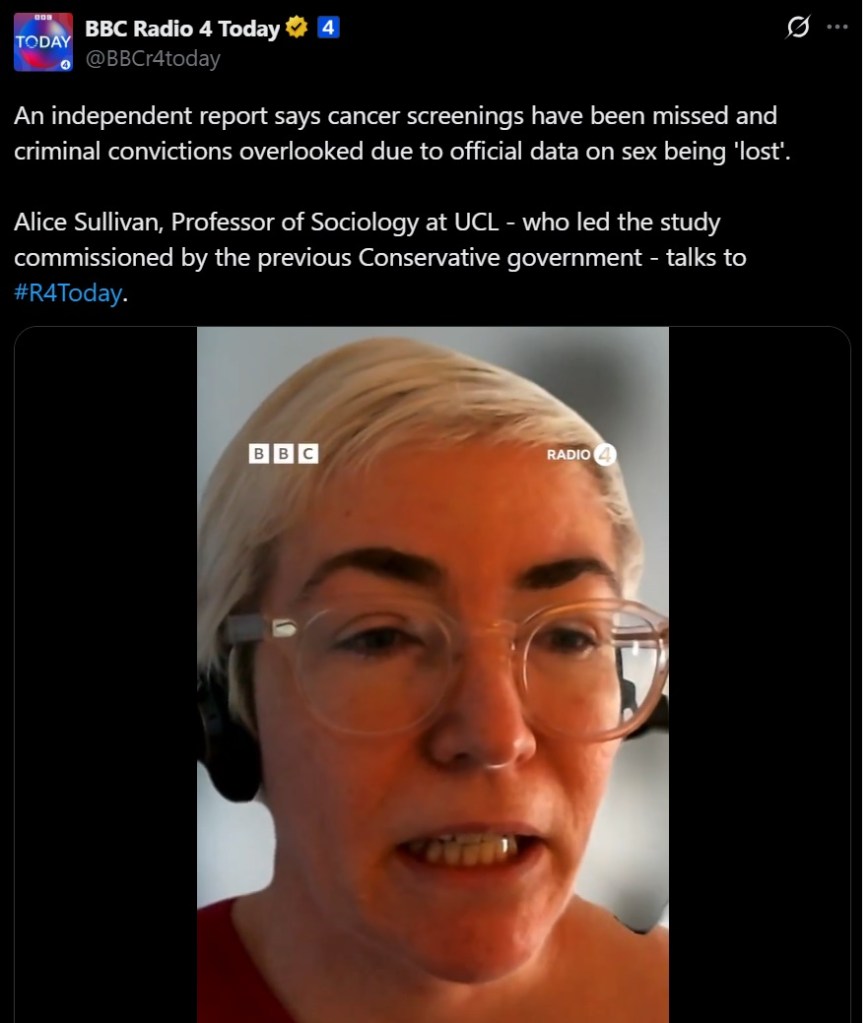 However, I fear the risk of measurement error is all part of the plan. ‘Gender critical’ researcher Lucy Hunter Blackburn (of the campaign group Murray Blackburn Mackenzie, commissioned to conduct research for the Sullivan Review) argued on social media on 27 April 2025 that the government might need to make it a crime to ‘misrepresent your sex’.